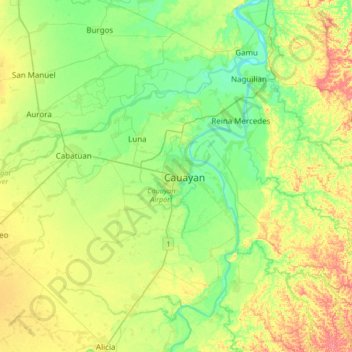 Isabela topographic map elevation relief. Lalawigan ng Isabela Province of Isabela. Tumauini San Mariano Gamu and Benito Soliven.