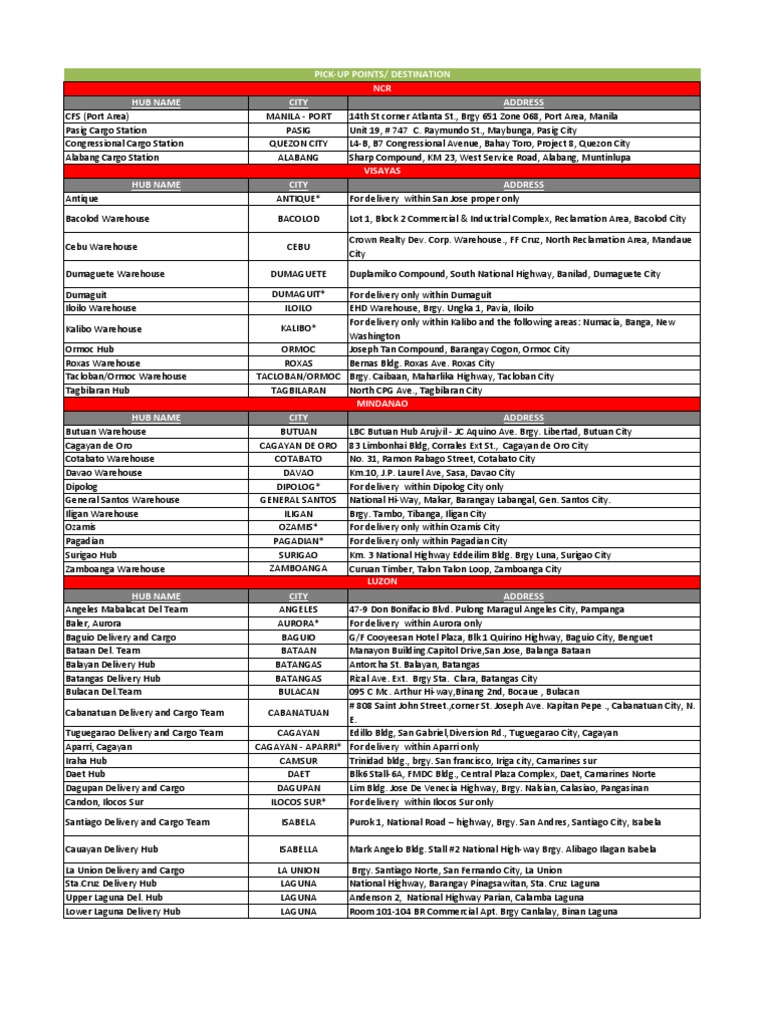 Lbc Lcl Sea Cargo Pick Up Points Pdf Economy Of The Philippines Philippines